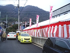 さほど早くもありませんけど、幸いに小学校近くの駐車場と言うか公園横の市道に駐車出来まして、チョッとラッキー(^_^)v