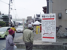 (左)JA田尻支店に設置されました“杏まつり”本部です(^.-)☆ (中)ここが散策のスタート地点です(^-^)/