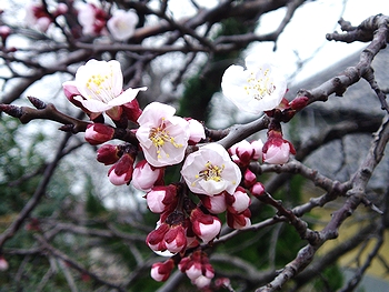 杏の花もほぼ満開状態なんですけど、ただ哀しい事に空模様が曇天です(^-^; 天気さえ良ければ、この杏の花が太陽の日差しを浴びて大変キレイだったのでしょうけどネ…