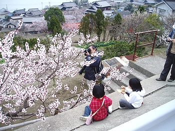 杏畑では、弁当広げられたご家族連れ、杏の花を写真に納めておられます写真愛好家、穏やかな瀬戸内とか鞆方面を見下ろし筆を走らせておられます方…と、実に様々に杏畑を楽しんでおられました(^_^)v