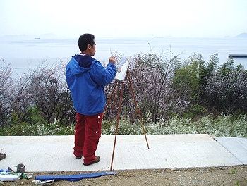 (左)これも“ミモザ”? (右)こぅして筆を走らせる方も…う〜ん、イィご趣味ですねぇ(^.-)☆