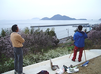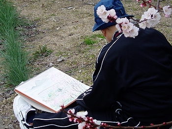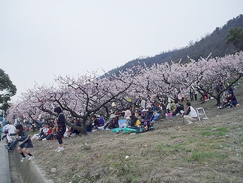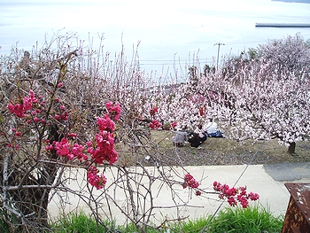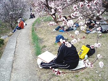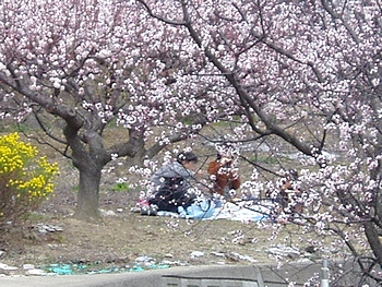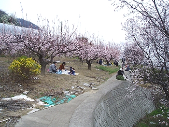 (右)杏畑で広げますお弁当…美味しいでしょうねぇ(^_^)v