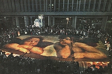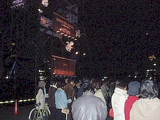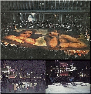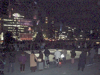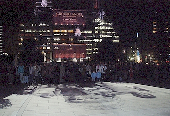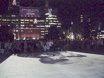 切なく美しい音楽が流れる中、いろいろな天使の絵や像、原爆ドームを訪れた人々、戦前と現代の子ども達の笑顔の映像が出現。地面を動き、重なり合い、平和の尊さを静かに訴えた。開幕と同時に2千人が公園を訪れて、幻想的な光の芸術を見つめた。
