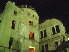 被爆60年に、アーティストの石井竜也さん(46)が光と音楽で平和のメッセージを表現する「GROUND ANGEL in HIROSHIMA」が16日夜、広島市中区の平和記念公園で始まった。
