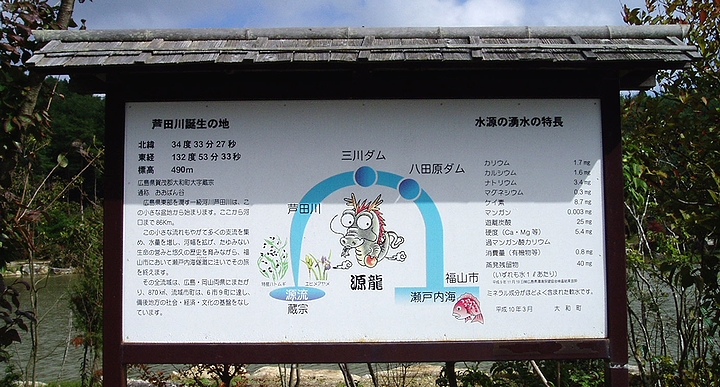 ここから始まる芦田川は、三川ダム、八田原ダムを経由して福山市へと流れて行きます(^_^)v