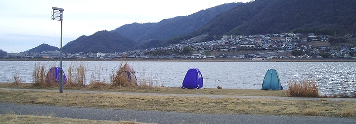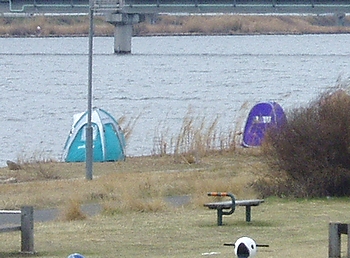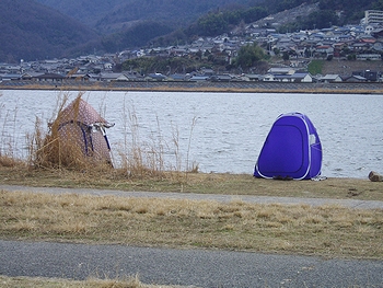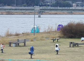 水質汚染著しい芦田川ですから、皆さん、バス釣りなのでしょうけど、寒く冷たい中でテントを張ってまでも釣りを楽しみたいのでしょうねぇ〜GONsanなんぞは、とてもそんな心境にはなりませんけど(^-^)/