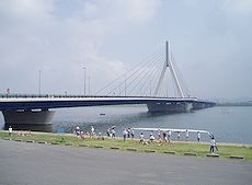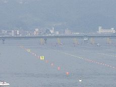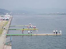 (中)芦田川大橋上から小水呑橋近くのスタート地点を…