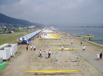 また、一瞬にして勝敗が逆転するようなスリル感もありませんが、全国各地の予選を勝ち抜いてきた各都道府県の代表選手は、郷土の栄誉を担って力の限り力漕いたします。