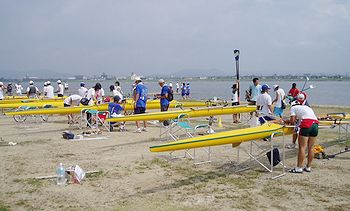 スタートした各艇は非常に高いピッチで漕ぎ出しますが、これがスタートダッシュです。20本から30本まで漕ぐと普通の漕ぎ方になります。(セトルダウンといいます。)