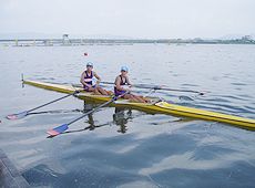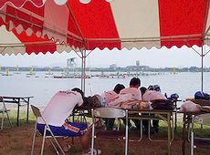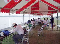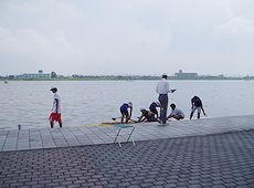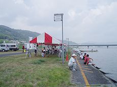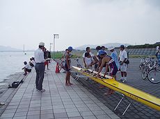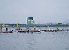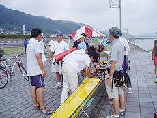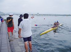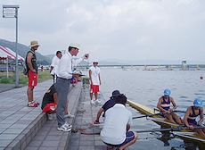 (左)係員の方がスタート順を指示しておられました… (右)コーチの方が何か指示を大きな声で(^.-)☆