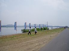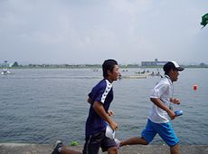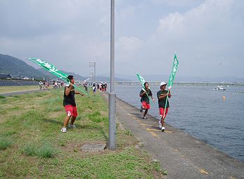 (左)(右)ボートの進行と平行して走りながらの応援ですから、一層大変ですねぇ〜