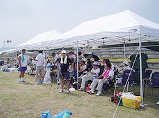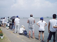 (右)炎天下で応援者も大変ですネ(^-^) 今か、今かと、同僚のスタートを待っておられましたが…
