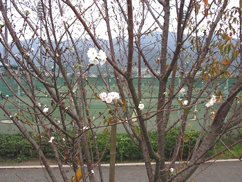 テニスコート横のジュウガツザクラを観賞後は、いつものように芦田川大橋下へと向かいます。