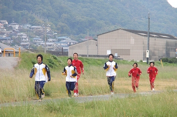 この橋下を通り過ぎ護岸を進んで行きますと、芦田川大橋方向に走っておられます方が10名ばかり…