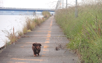 土手に出ますと駆け足で河川敷に走りますゴンchan。