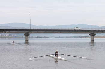 河面には艇も並んではおりませんでしたから、ボートの関係でもありませんで陸上部の皆様でしたのでしょうねぇ〜