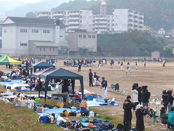 市民球場横の多目的広場…小学生の皆様のソフトボール大会で賑わっておりました(^.-)☆