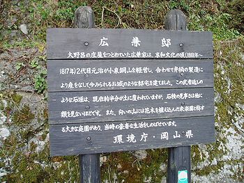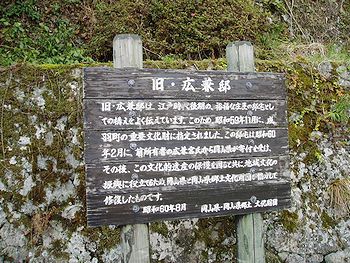 広兼氏は大野呂の庄屋で、同家2代元治が享和、文化の頃、小泉銅山とローハ(ベンガラの原料)製造を営み巨大な富を築き、二階建ての母屋、土蔵3棟、桜門、長屋、石垣は文化7年(1810年)の建築で庭園には水琴窟が設けられており、規模、構造とも雄大な城郭を思わせる構えで、今もそのままに当時の富豪を偲ばせている。