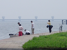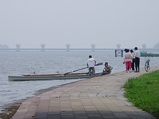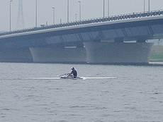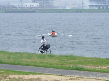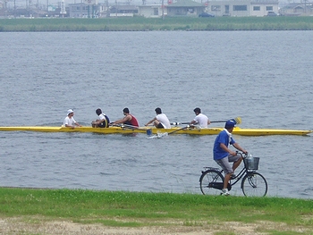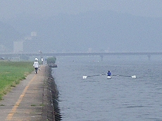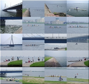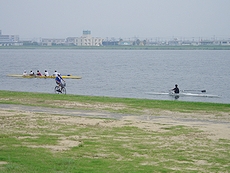 | ジョギング後は嫁さんのレガッタ練習の見物でした(^.-)☆ |