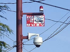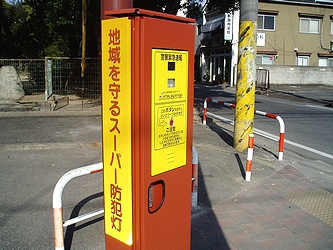 機能としましては、通報ボタンを押しますと警報が鳴り東署との通話も可能で、防犯カメラも24時間作動。警報音と共に赤色灯が点滅とは仲々威力を発揮しそうではありますネ。