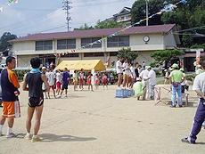 スタートまでまだ2時間もありますのに、結構皆さん早めにヤッて来ておられましたネ(^.-)☆テクテクと歩いて会場・青野小学校まで出かけまして、とりあえず受付を済ませて参加賞のブドウ1箱を受領。