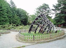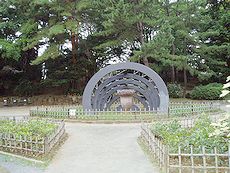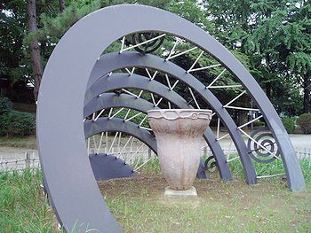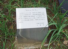 (左)(右)このモニュメントは、平成2年4月1日から9月30日まで大阪市鶴見緑地で開催された“国際花と緑の博覧会”に千葉市が出展した「千葉市ふるさとの庭」に展示したもので、ここ千葉公園に移設し、後世に伝え残すものです。-- 平成3年12月千葉市 --