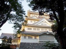 ここの天守閣は、小田原城によく似た江戸期の層塔式天守で、内部は市立郷土歴史館・プラネタリウムとなっている。