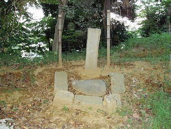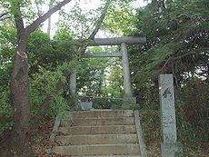 (左)土塁の一角に“石器時代の砥石”の石碑が… (右)神明社入口の鳥居です(^.-)☆