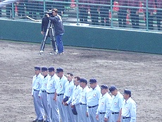 (左)こちらは、広陵高校の応援団の皆様です (中)いよいよ第二試合目の“広陵×国泰寺”の試合開始です(^_^)v