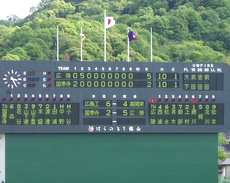 (右)両校とも本塁打絡みの得点で3回以降は無得点、仲々引き締まった試合でありました(^_^)v