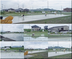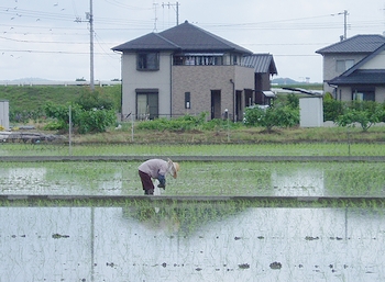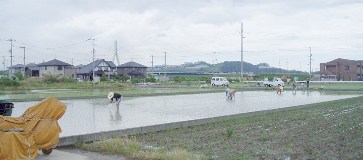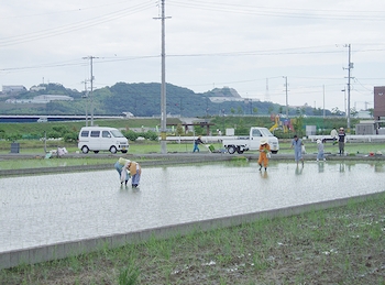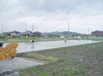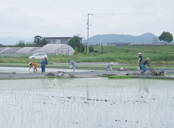 ご家族の皆様総出で昔ながらの手植えの田植えの真っ最中。