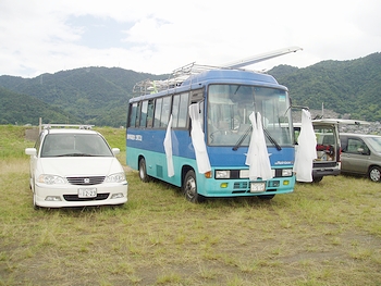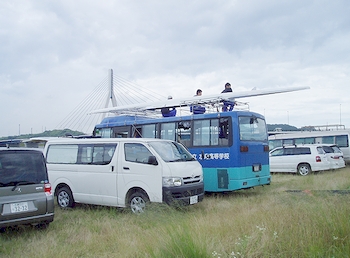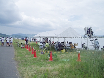 河川敷には鳥取ナンバーのバス・車輌もチラホラ。