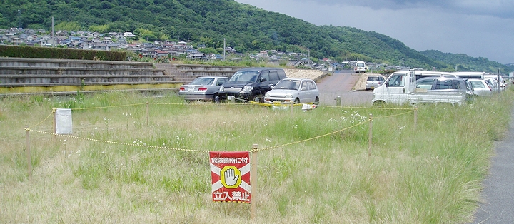 で、よくよく見てみますと、このロープで囲まれました区域は、以前には砂場として利用されましたようなブロックで囲まれた一角でありました。