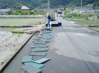 備後地方を流れる芦田川の河口堰(ぜき)付近を大量のユスリカが飛び交っている問題で、国土交通省福山河川国道事務所は28日、船2隻でネットをえい航し、ユスリカのさなぎを傷つける新たな作戦に乗り出した。川底のさなぎは、羽化する直前、水面に浮上する習性がある。この日は、長さ20メートル、幅2メートル、網目が2.6ミリ四方のネットを利用。2隻の作業船で芦田川の左岸付近を往復し駆除に当たった。