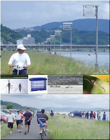 国交省芦田川河川事務所sanには何とか対処して頂きたいものですけど、仲々効果的な方法が見当たりません様子。近々、現状の「電撃殺虫機」の青い色を、より強力な白い色に取り替えられますとか…