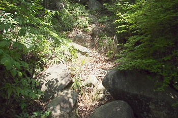 大小の岩が散在で、その間を進みますけど、歩き易い参道ではあるようです。