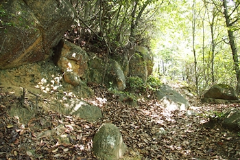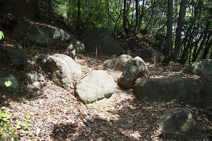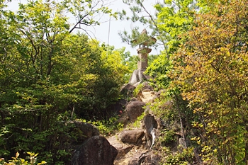 現在山頂部分には石鎚神社が奉られている。石鎚神社への参道には所どころ大石が転がっており、山頂部にも大石が点在している。