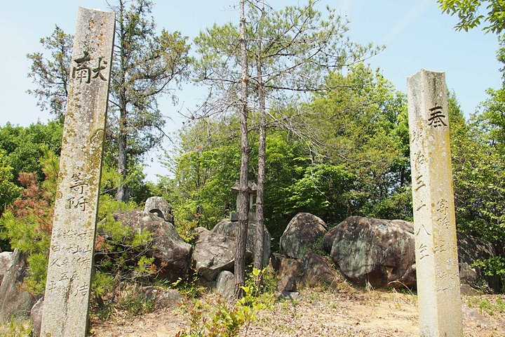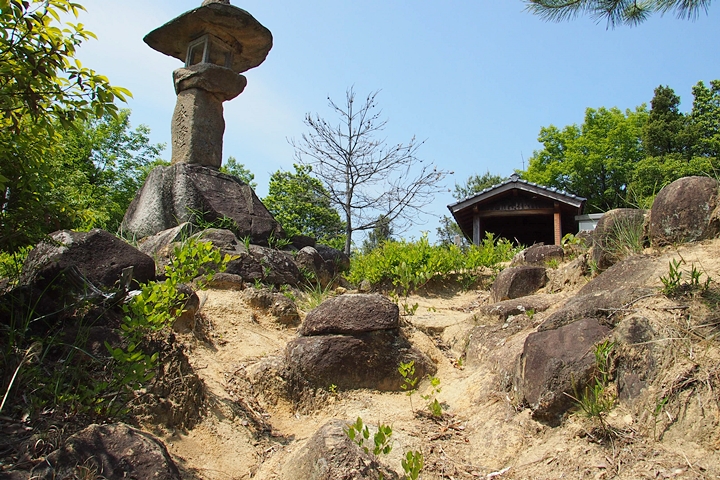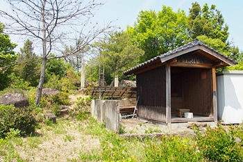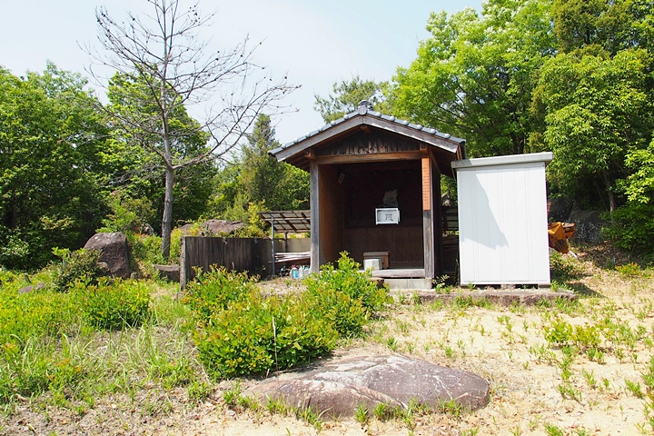 串山城跡に到着しますと、ここには簡単な社と、その後方には祠と石仏が…
