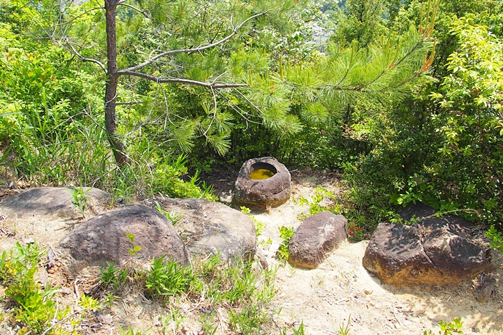 登山道は東南から石鎚神社への山道があり、登りやすい山城跡だ。このように串山城は、規模も小さく、遺構も簡単で、到底本格的な山城とは言いがたい。そこで注目したいのが立地だ。