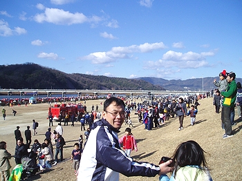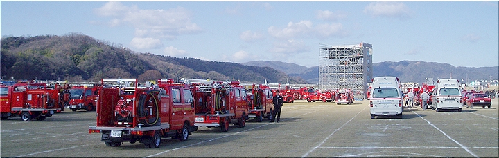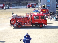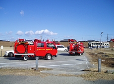 既に消防署の方が三人来ておられまして、携帯で消防車を要請しておられるのでしょうけど、出初め式の直後ですからスグには来れませんのかも…