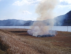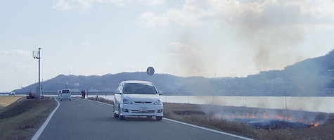出初め式の見物を終え我が家にと帰っていますと、水呑大橋〜小水呑橋間の河川敷の雑草が燃えておりました(^-^;