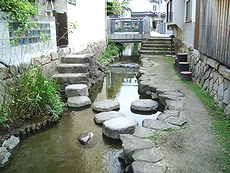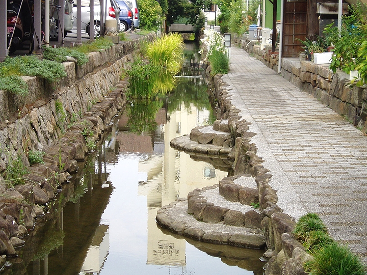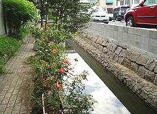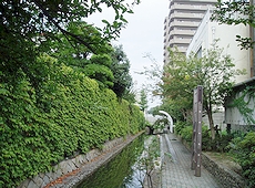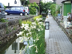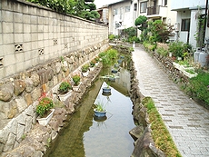 福山城外堀りのこの道三川は、地下水を汲み上げて放流し清い流れを形成しておりまして、この川の周辺は町内会の皆様の日頃のお世話により美観を保たれています。