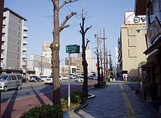 (左)宿泊ホテル前の電車通りです (中)水前寺公園近くの宿泊ホテルです (右)翌朝早朝もまた江津湖を散策でした(^.-)☆