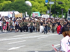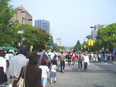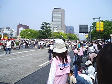 (右)パレードが終了し百b道路は全面開放で歩行者天国 もの凄いひと、ヒト、人でしたネ(^.-)☆