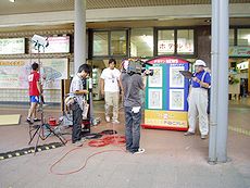 (左)(右)地元テレビ局が福井駅前で番組中継前のリハーサルを行なっておられました(^.-)☆