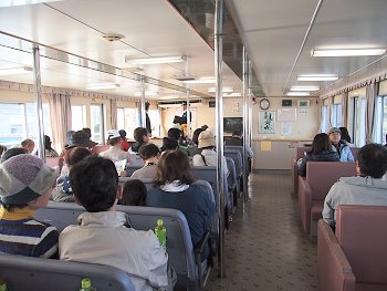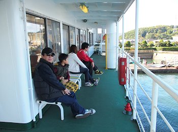 このご夫婦、危ないから…と内側の席を選択なさったのでしょうけど、船上からの景観を楽しみますのには外側の方が宜しいのに…
