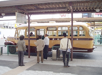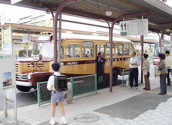 ノンビリと鞆鉄バスセンター前を通り過ぎていますと、おっ、これまた久し振りに眼に入りましたのがボンネットバス(^_^)v