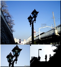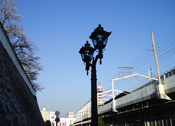 福山駅北口・福山城石垣脇のこの街灯…ふ〜ん、『ガス灯』なんですねぇ(^_^)v勤務を終えての退社後、鞆鉄バスに乗車で福山駅にと向かいましたが、丁度バスは発車した直後(^-^;次のバスまで10分ですから待っても良かったのですけど、これ幸いにと福山城公園にサクラ見物に立ち寄りましたGONsanです(^.-)☆福山駅南口から構内を抜け北口に出まして、福山城の石垣脇の歩道を歩いておりましたら、頭上方向に“ゴト、ゴト、ゴトッ”と奇妙な音。で、“んっ?!”と見上げますと頭上には街灯です。その街灯下に立ち止まりましてズッと街灯を見上げますGONsan。暫し凝視していますと、やはり頭上からの「ゴト、ゴト、ゴトッ」と言う音は、この街灯から発せられておりました。いゃぁ、知りませんでしたけど、この街灯は『ガス灯』なんですねぇ〜今まで全く知りませんで気付きませんでしたよ(^-^)ガス灯は炎が出ます時に、こんな音がしますのですねぇ(^_^)v私が珍しそうにガス灯を眺めておりましたら、前方からご年配の男性と女の子のお孫sanが歩行して来られました。そして、「ゴト、ゴト、ゴトッ」と言う音に、迷わず視線は街灯に向かっておりました(^-^)わざわざ私同様に頭上を見上げられますのですから、きっと、今までこのガス灯の存在をご存知なかったのでしょうねぇ〜それにしましても、このガス灯はいつから存在しますのでしょうねぇ〜ズッと前から存在しますのでしたらGONsanも気付きますから、ここ最近の設置なのかも分かりません。とにかくガス灯とは情緒がありますよ(^_^)v暫く3人で眺めておりまして、お互い会話します事もなく、それぞれの行き先にと歩行続行となりましたが、GONsanが今から上ろうとします石段上に眼を移しますと、若者が私達にカメラを向けておられました。