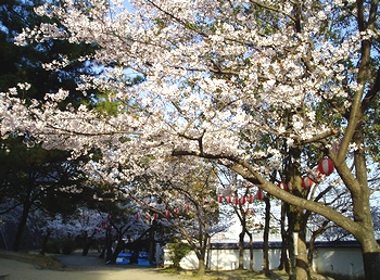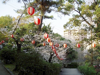 (左)JR福山駅北口から福山城公園のサクラを(^.-)☆ (右)これはガス灯なんですねぇ〜