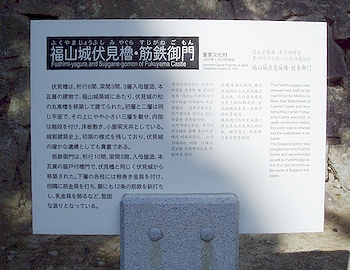 その一つは、福山城正門として使用された鉄筋御門で、今一つが、伏見櫓である。戦災で天守閣などは焼失した中で、この二つの伏見城の遺構は戦災を免れている。